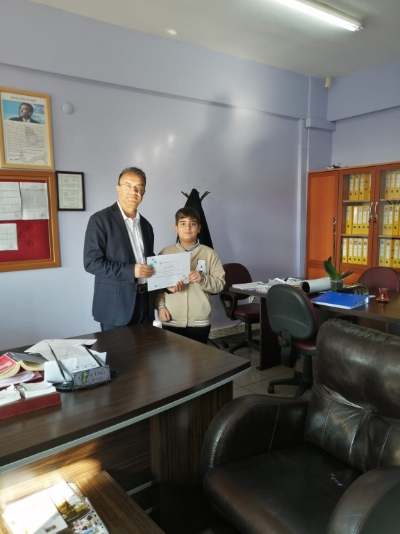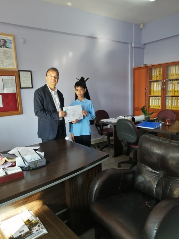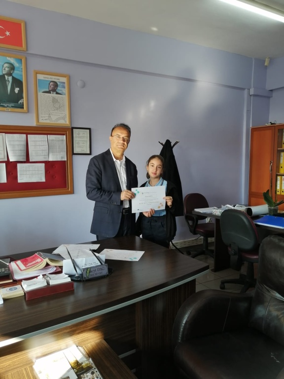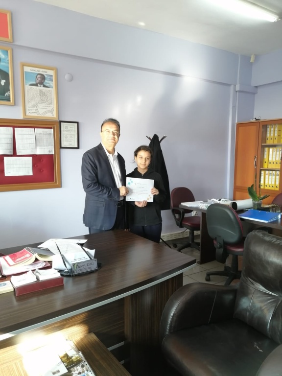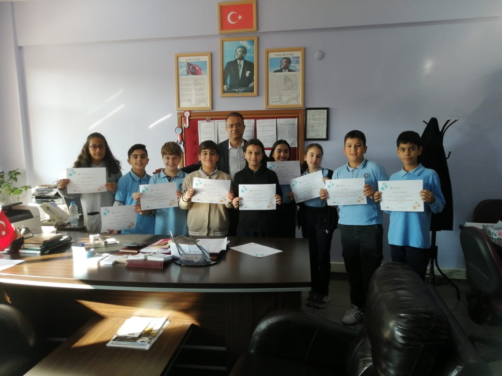 Ulusal ve Avrupa etiketi alan "Math With Gamification" projesinde ki öğrencilerimize sertifikaları Okul Müdürümüz Cüneyt DAĞ tarafından verildi. Projede 9 Yabancı ortakla matematik kazanımları üzerine öğrencilerimiz, Okulumuz Matematik Öğretmeni Kader Altay rehberliğinde oyunlar tasarladı ve arkadaşlarıyla oynadı. Kimi zaman farklı ülkelerle karma gruplar grup, onlarlada oyun tasarladı. Öğrencilerimizi tebrik ediyoruz.
