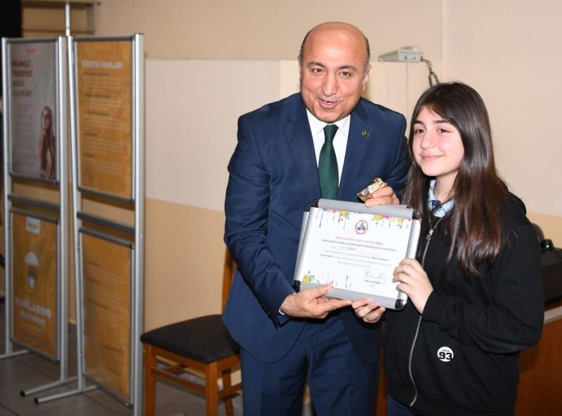 Gümrük ve Ticaret Bakanlığı´nın düzenlediği Tüketici Hakları konulu resim yarışmasında okulumuz 6-A sınıfı öğrencisi Esin Doğan Türkiye üçüncüsü olmuştur.Öğrencimizi tebrik ediyor, başarılarının devamını diliyoruz.