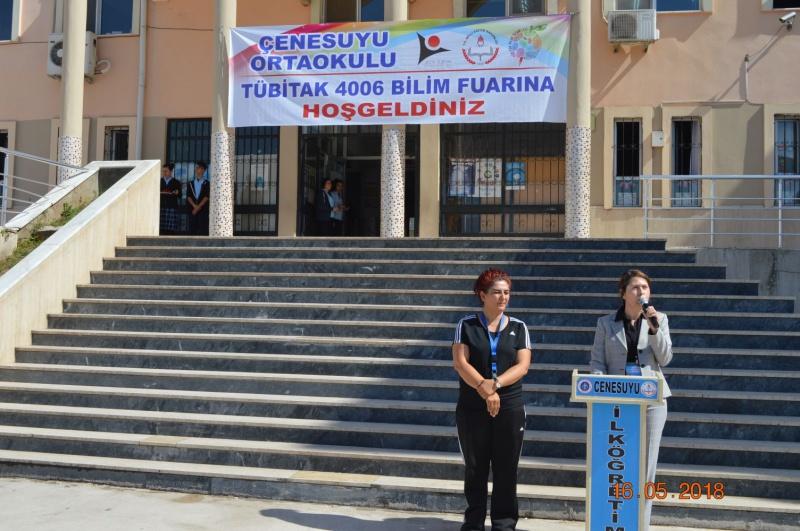 Çenesuyu Ortaokulu Tübitak Bilim Fuarı 16.05.2018 saat 10´da açıldı. 24 projenin bulunduğu sergide 45 öğrencinin projeleri sergilendi. Fen Bilimleri öğretmenimiz Gökçe Kübra YILDIRIM'ın koordinatörlüğünde düzenlenen Bilim Fuarı, Fen Bilimleri öğretmenlerimiz Fatma Müşgan Bayraktar,Nuray Altun ve Cengiz Erdem öğretmenlerimizin rehberliğinde hazırlanan projelerden oluştu. Bilim Fuarımız, İlçe Kaymakamımız Sayın Akın Yılmaz Bey ve İlçe Milli Eğitim Müdürümüz Ali Osman Karabayır Bey'in yanısıra okul müdürleri ve okul aile birliği üyeleri katılımı ile açıldı.